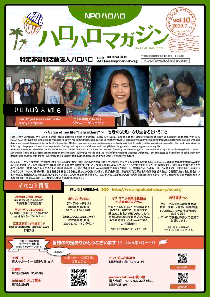 tel/fax 03-6873-8412 Mail : mail@npohalohalo.org