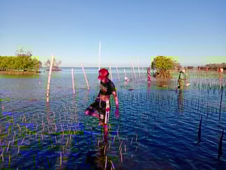 ボホール事業地でのマングローブ植樹活動は、人との接触を避けて継続しています。