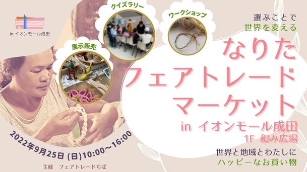 2022年9月25日(日)10:00〜16:00 なりたフェアトレードマーケットinイオンモール成田