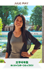 インターンシップ(OJT)をスタートさせたJulie Mayは、現在一日8時間の勤務をこなし、OJTの完了にむけて日々励んでいます。