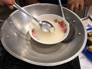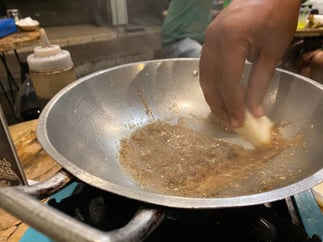 ②薬味を炒めて、豚の脳みそ、ソースを自分でブレンドします。