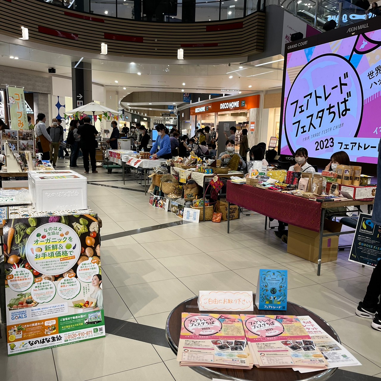 2023年5月のフェアトレードフェスタちばでは、1ヶ月を通して、フェアトレード企画やクイズが実施されたほか、イオンモールの旗艦店幕張新都心会場でグローバル・ローカルの14もの団体と出展催事ができました。