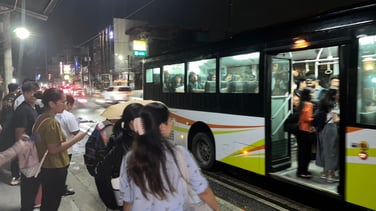 どうしても暑くてエアコンが欲しい学生はバスに乗ります。