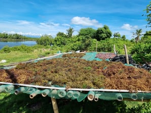 ハロハロのボボール事業地であるアルマー島は、島民みんなが海藻農家。儲かるのかと思いきや、海藻を栽培することで、逆に借金を抱えてどんどん貧しくなっている現状があります。年3回収穫期があり、収穫した海藻を乾燥させて市場へ卸すのですが、季節風や台風で海藻が全滅し収入0、ということもザラ。海藻農家の人々は、栽培開始時に借金をして苗付けをし収穫時のツケにしていることが多いんです。海藻が収穫できず全滅してしまうと借金だけが残る、という悪循環!ボホール本島やセブに出稼ぎに行って借金を返済するという事例まで。もう海藻栽培は辞めた方がいいんじゃないか、素人ながらも思うのですが、島の人々には伝統農業としての誇りもあるようで...。今でこそミンダナオがフィリピンの海藻栽培の中心地になっていますが、かつてはボホールが一代産地だったんです。じつはこのアルマー島での海藻栽培の活性化の取り組みは2016年から試行錯誤してきたこともあり、ヘタフェ市の観光省からも、海藻栽培の景観がエコツーリズムポイントとしてお墨付きをいただいたほど。また、海藻はマングローブの2倍の炭素吸収量があるという点も近年注目されているよう。豊かな海藻栽培の島を目指して立ち上げた住民グループがその夢を叶えていく支援に、もう一歩踏み込みたいのですが、引き続きもがいています。