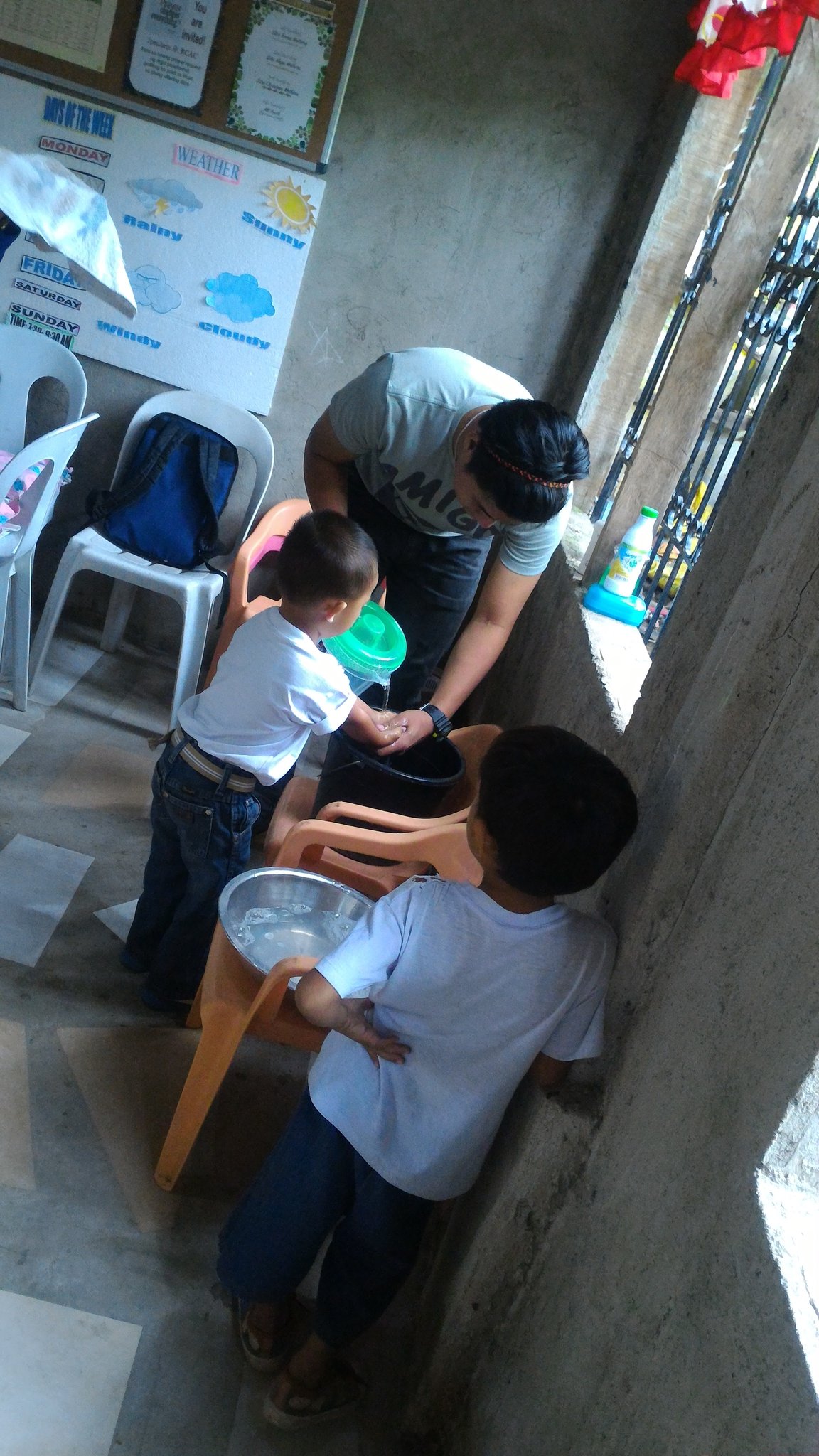 母親の洗濯を水汲みで手伝う様子も見られ責任感ある成長が見て取れます。