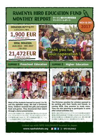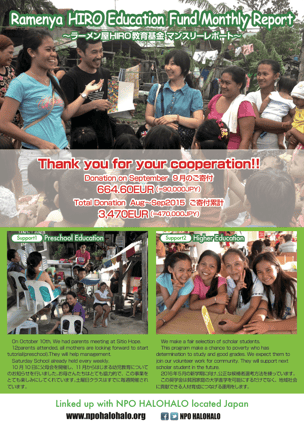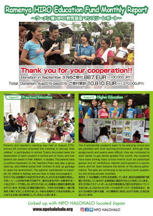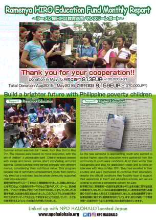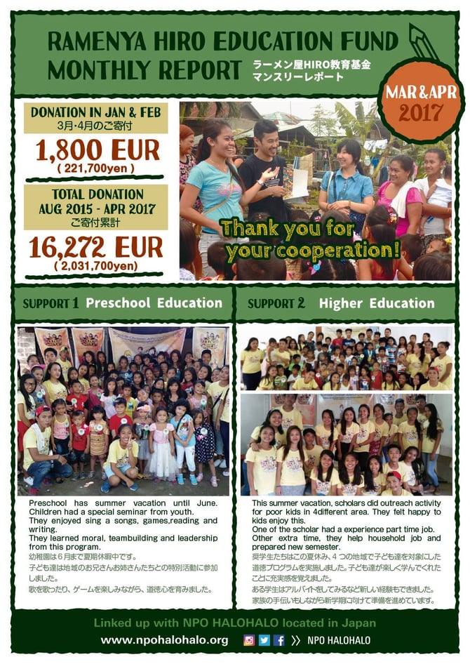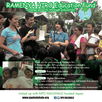 当基金はバルセロナのRamen-ya HIROオーナー吉行大樹さんとNPOハロハロとの協働教育サポートです