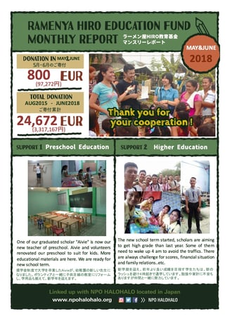 奨学金制度で大学を卒業したAivieが、幼稚園の新しい先生になりました。ボランティアと一緒に子供目線の教室にリフォームし、学用品も揃えて、新学年を迎えます。