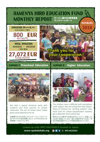2019年始め、奨学生たちは学業を続ける意志を再確認し、また家族の支援のもと継続する勇気も得ました。年始の試験は良い結果につながりそうです。