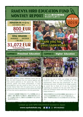 高校大学奨学生たちは年末の課題に追われました。イントラムロス体育祭やインターンシップもありました。